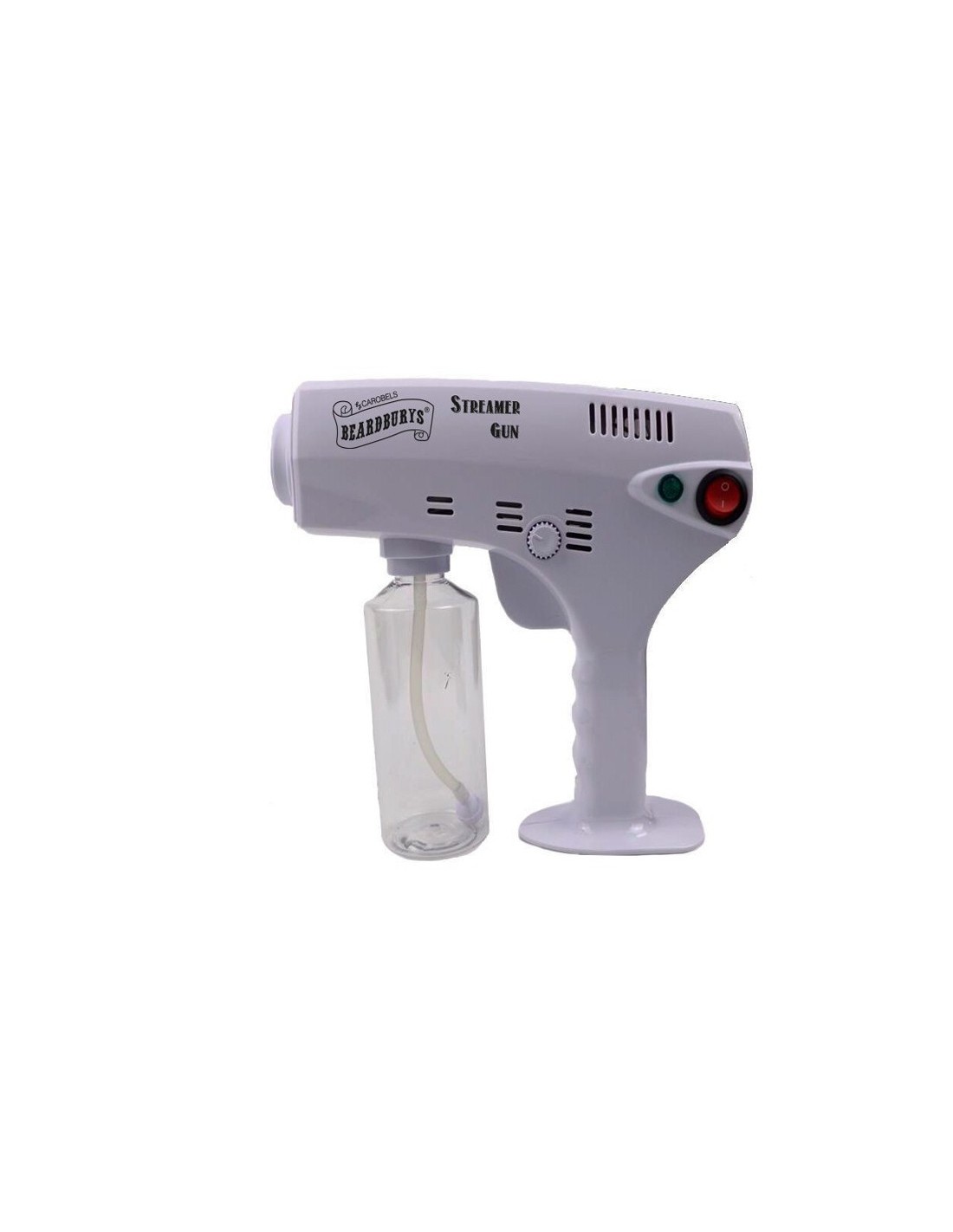 La pistola nebulizadora Beardburys Streamer Gun, debe utilizarse con AGUA DESTILADA. Para una desinfección completa de los sillones y otros elementos del tocador.
