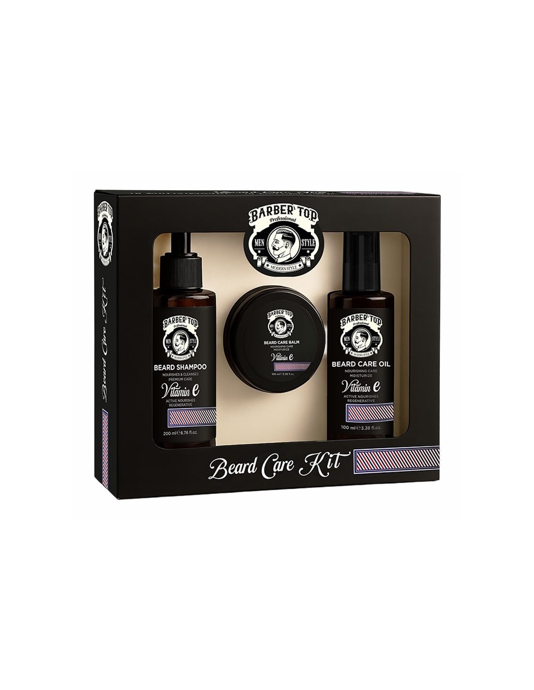 · Kit Cuidado de Barba Barber Top. Conjunto completo de cuidado de la barba que incluye 3 productos mejorados.