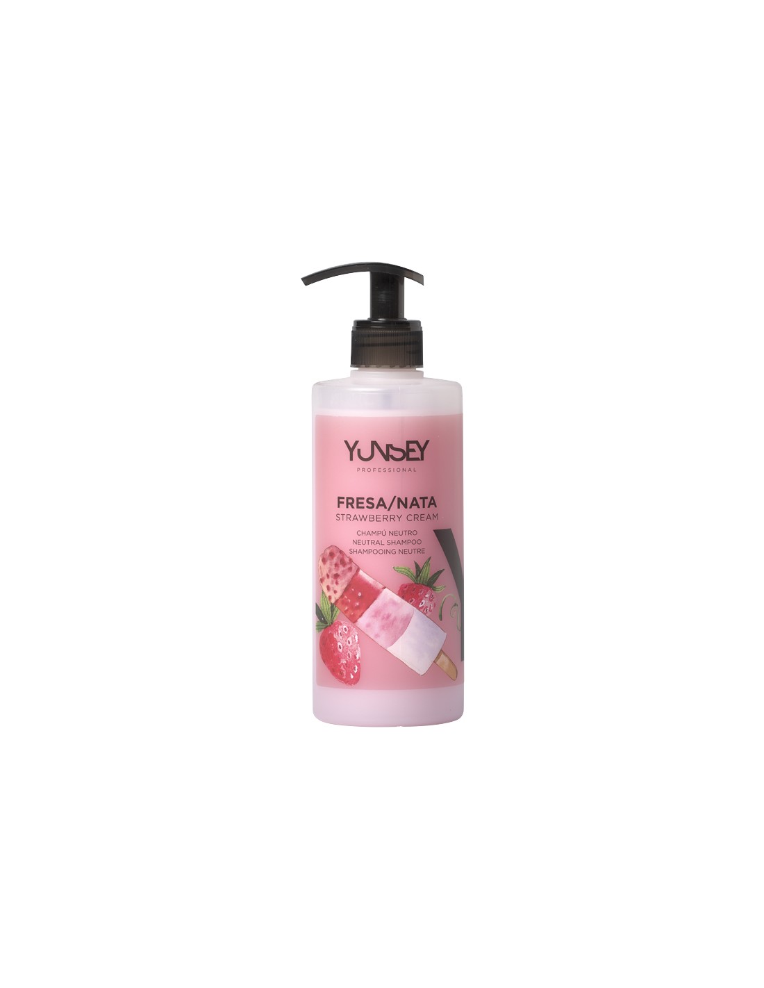 Champú Fresa/ Nata 400 ml Yunsey. Champú profesional con PH neutro, proporciona una gran sensación, es suave, ligero y muy eficaz para ofrecer una limpieza completa del cabello y del cuero cabelludo.
