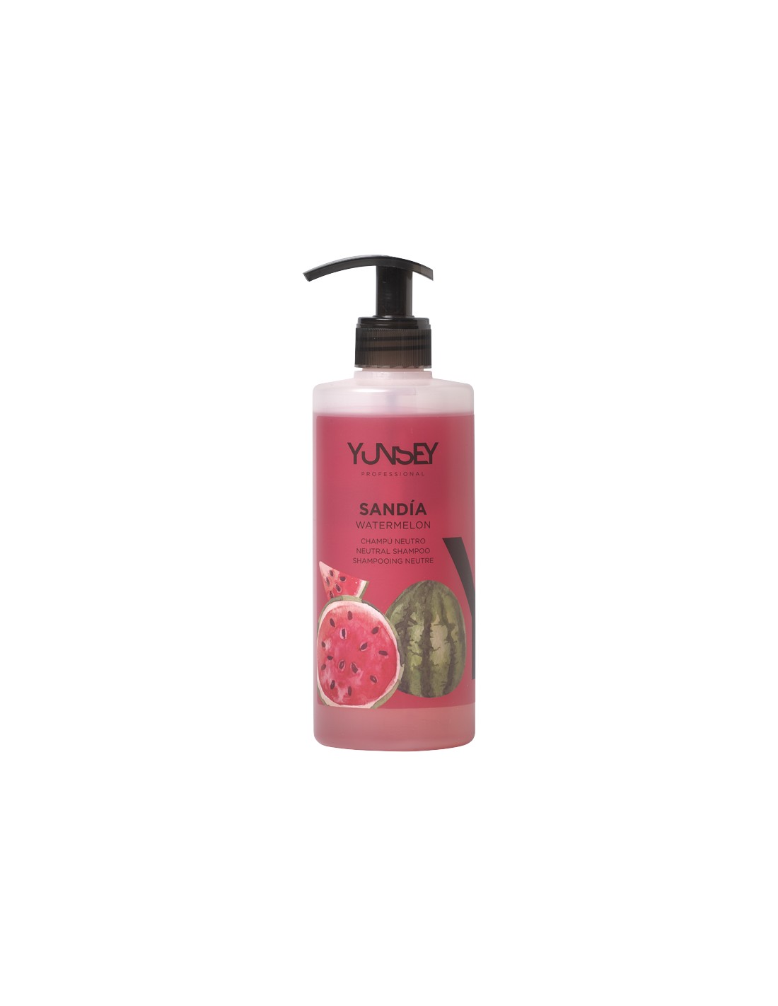 Champú Sandia 400 ml Yunsey. Champús formulados con pH neutro, suaves y delicados que eliminan eficazmente los residuos, limpiando el cabello y el cuero cabelludo en profundidad. Formulaciones sutiles de uso frecuente que brindan una placentera experiencia sensorial… Disfrutarás de un perfume excepcional durante la aplicación y en el cabello. Champú profesional con pH neutro que proporciona una sensación exquisita; es suave, ligero y altamente eficaz para ofrecer una limpieza integral del cabello y del cuero cabelludo. Adicionalmente, este champú cuenta con un aroma espectacular que aportará a tu cabello fortaleza, brillo y facilitará su manejo.