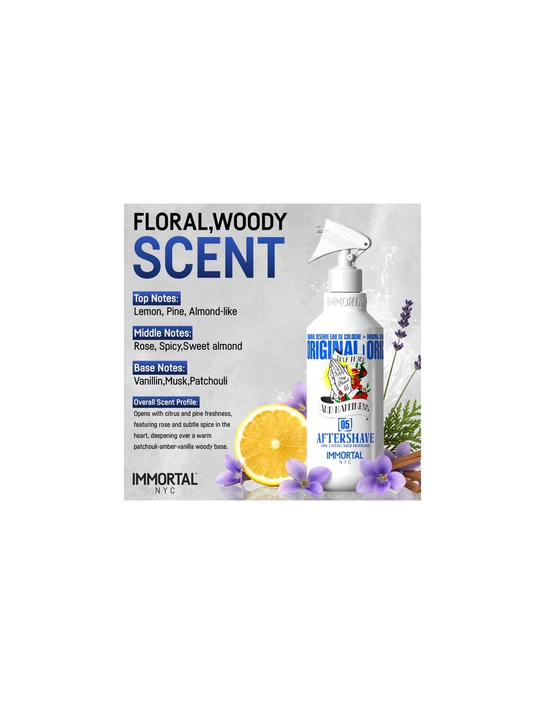 Colonia Stay Blessed 05 Aftershave 500 ml Immortal NYC. Eleve su rutina de aseo con Immortal NYC Stay Blessed Aftershave 05, un producto innovador donde la fragancia audaz se combina de manera excepcional con el cuidado de la piel. Este aftershave ha sido diseñado específicamente para el hombre moderno que no solo busca un buen afeitado, sino que también exige mucho más de su rutina diaria de cuidado personal. Con una fórmula de larga duración, este aftershave ofrece una refrescante explosión de masculinidad, al tiempo que cuida activamente su piel, haciendo que cada aplicación sea una experiencia revitalizante.