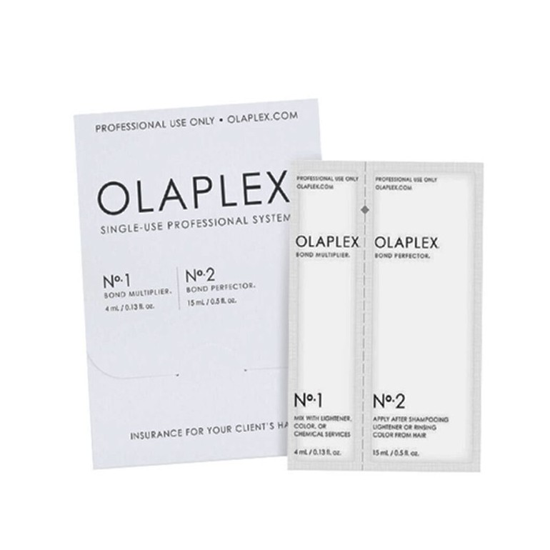 Tratamiento Pasos 1 y 2 Sobres Monodosis Olaplex. En sobre duo pack nº1 Bond Multiplier 15ml + nº2 Bond Perfector 30ml.