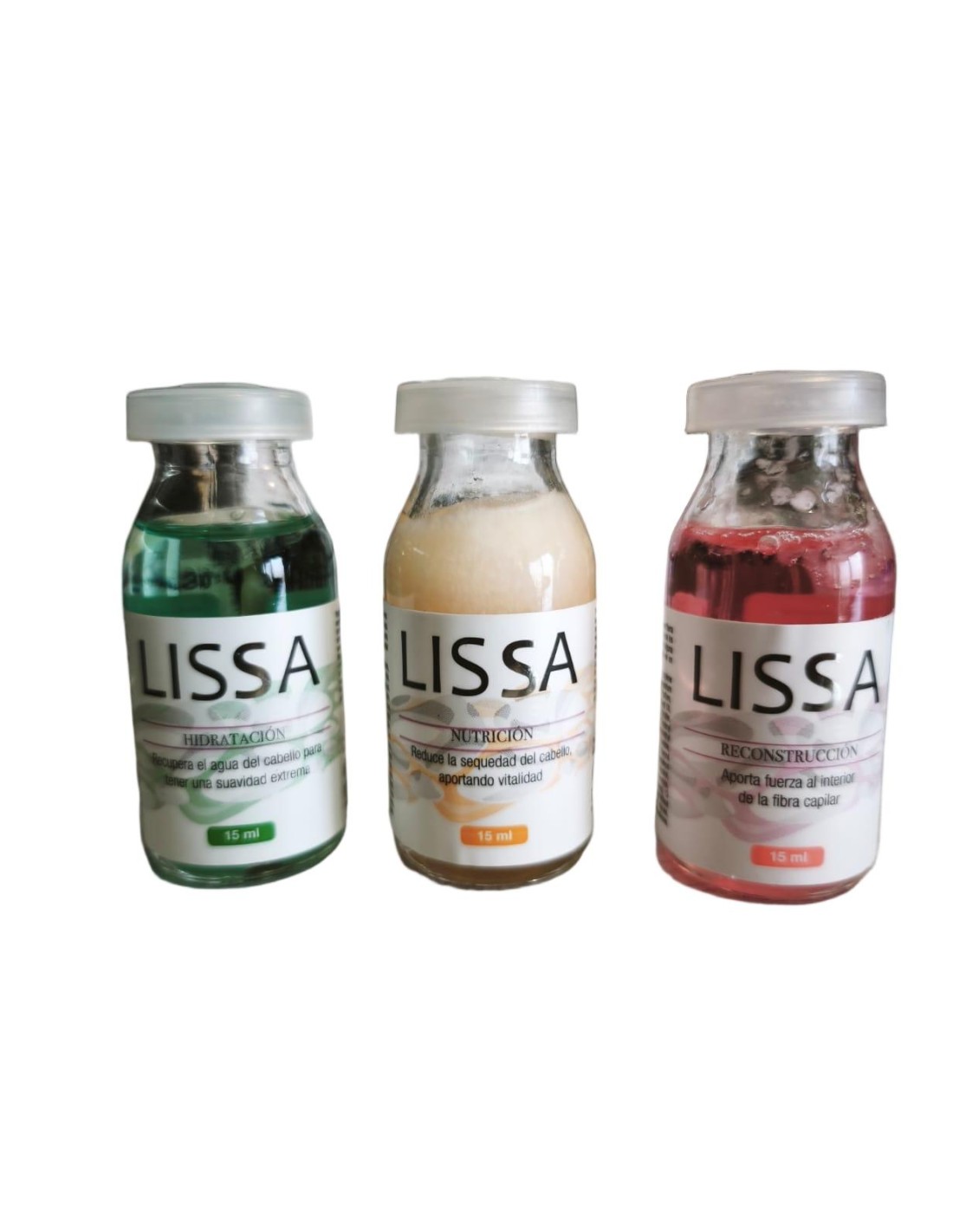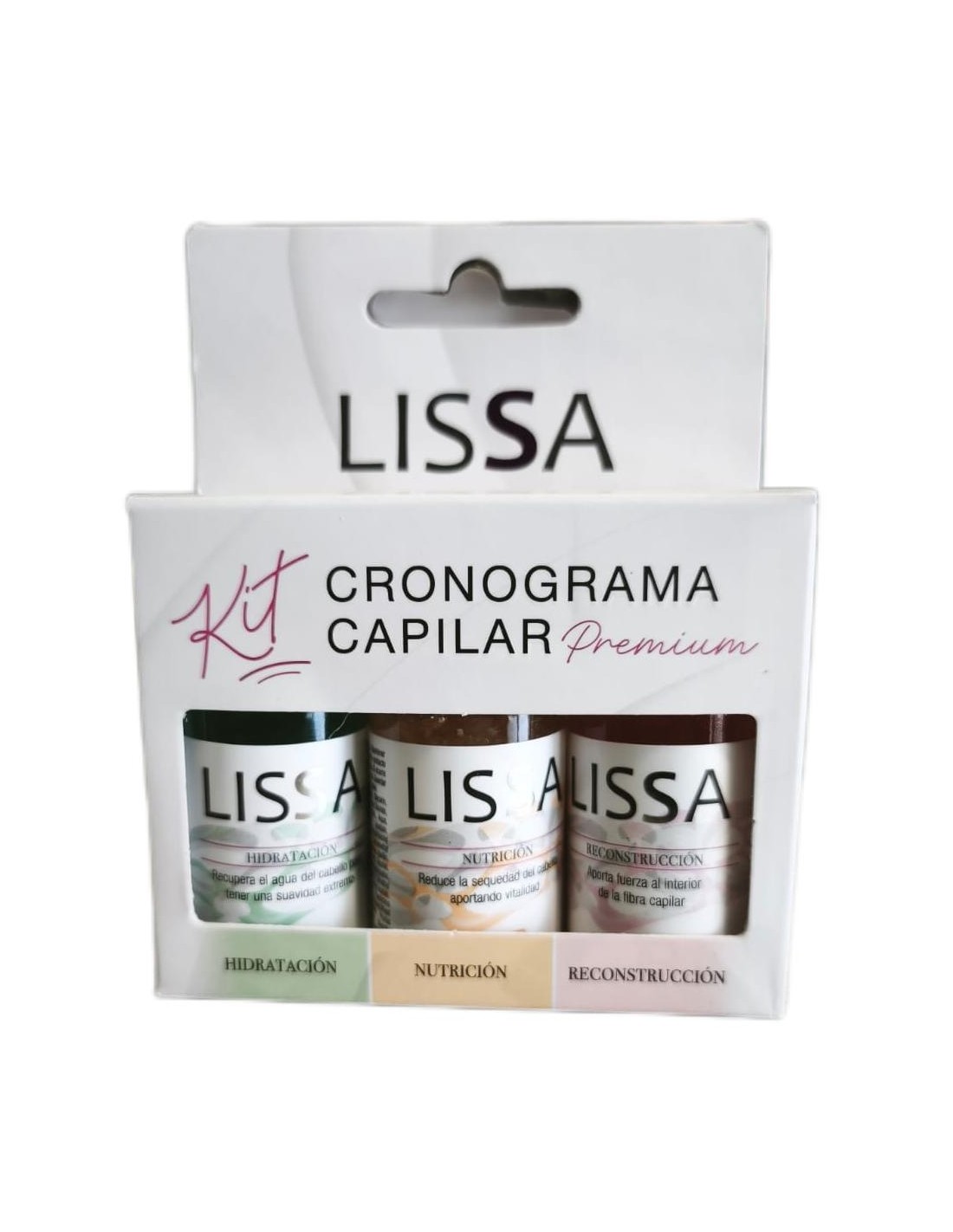 Kit 3 Ampollas Cronograma Capilar Lissa. 3 beneficios: hidratación, nutrición, reconstrucción. Hidratación: restaura la humedad y suavidad del cabello. Nutrición: aporta vitaminas y nutrientes esenciales para fortalecer el cabello. Reconstrucción: repara las fibras capilares dañadas, previniendo roturas.